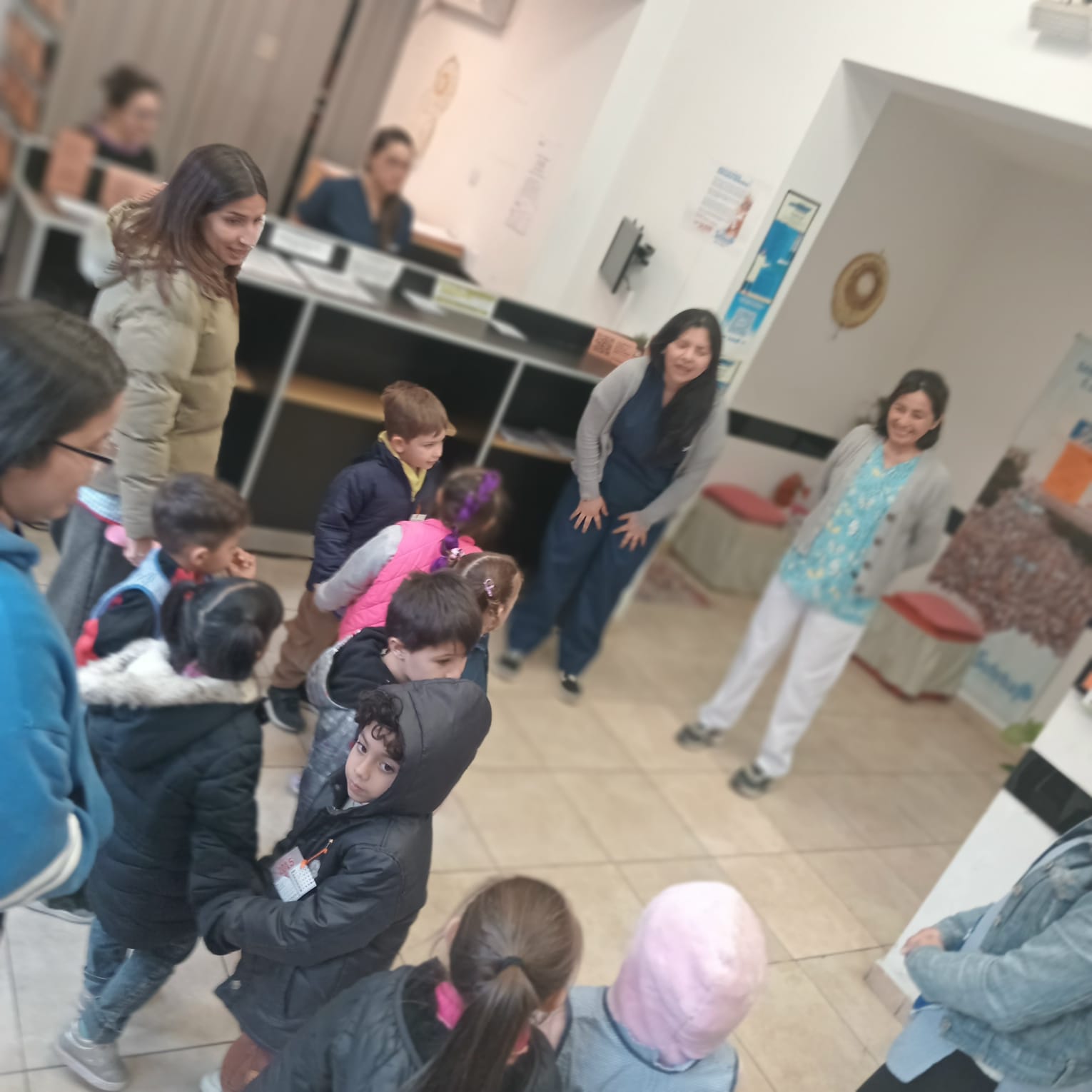 Con entusiasmo y miradas de asombro, lxs niñxs, junto a sus familiares y Docentes, fueron recibidxs por la Responsable Política Cynthia Lanzillotta, junto a la Enfermera Raquel Subía, la Asistente Dental Nadia Jerez, y el equipo de admisión, quienes lxs guiaron en un recorrido por el establecimiento.