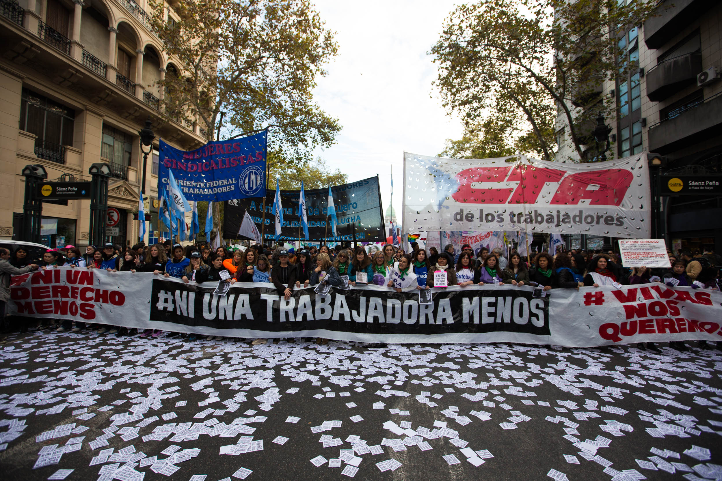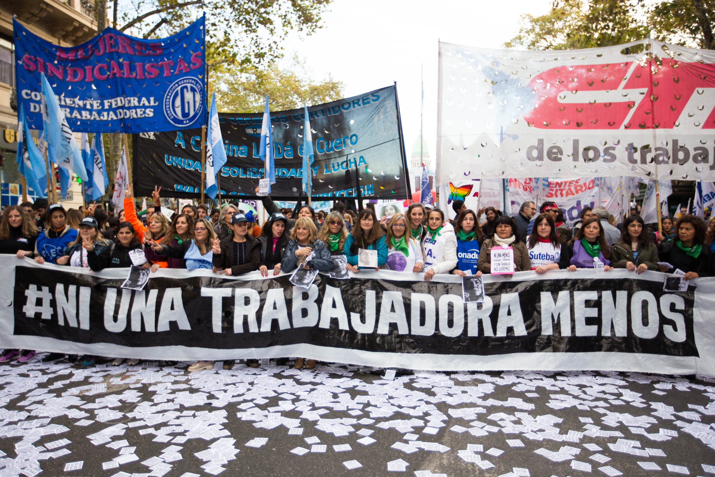 SUTEBA participó, una vez más, de la caravana que partió desde Congreso hasta Plaza de Mayo. Nos volvimos a encontrar para denunciar, juntas, a este sistema patriarcal que nos reprime, nos excluye, nos mata y vulnera nuestros Derechos.