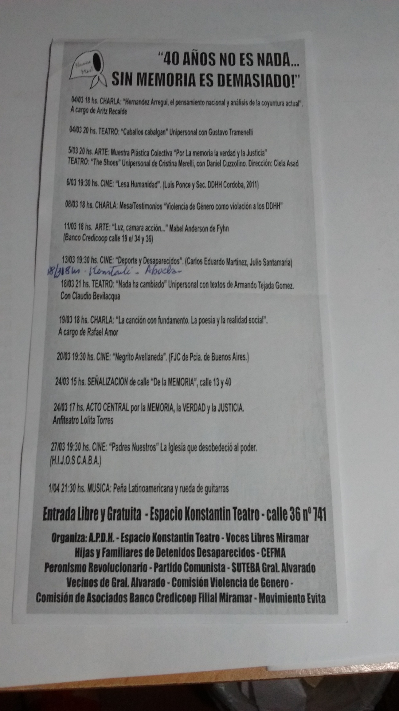 El SUTEBA Vte. López, junto a docentes y alumnos del distrito realizaron un Siluetazo en el marco de la jornada por Memoria, Verdad y Justicia para conmemorar los cuarenta años del Golpe Cívico Militar.