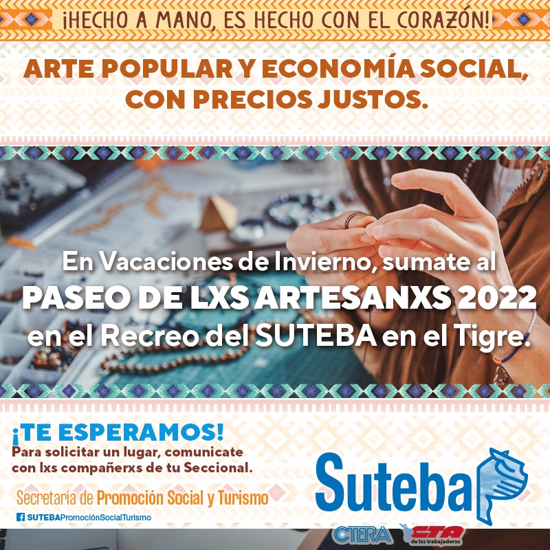 Durante todos los días de Vacaciones de Invierno, invitamos a todxs lxs compañerxs artesanxs a llevar sus productos para promoverlos y comercializarlos en nuestro Recreo del Tigre.