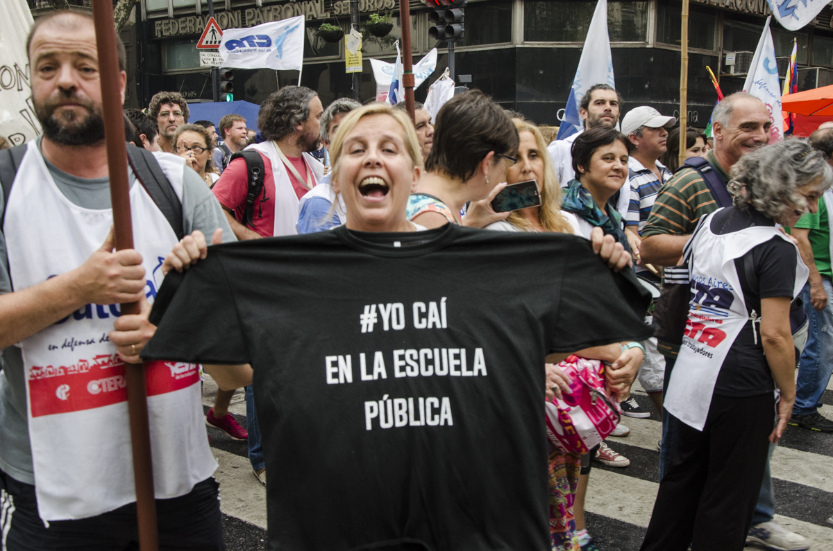 ¿Qué culpa tiene un docente si no puede dar clases porque hay un gobierno que le niega el salario digno que necesita para poder trabajar? El presidente dijo que quiere diálogo. Nosotros le contestamos que queremos discutir el financiamiento educativo, el cumplimiento de la ley, la paritaria libre, los planes de mejoras, más formación docente, más doble jornada y más educación".