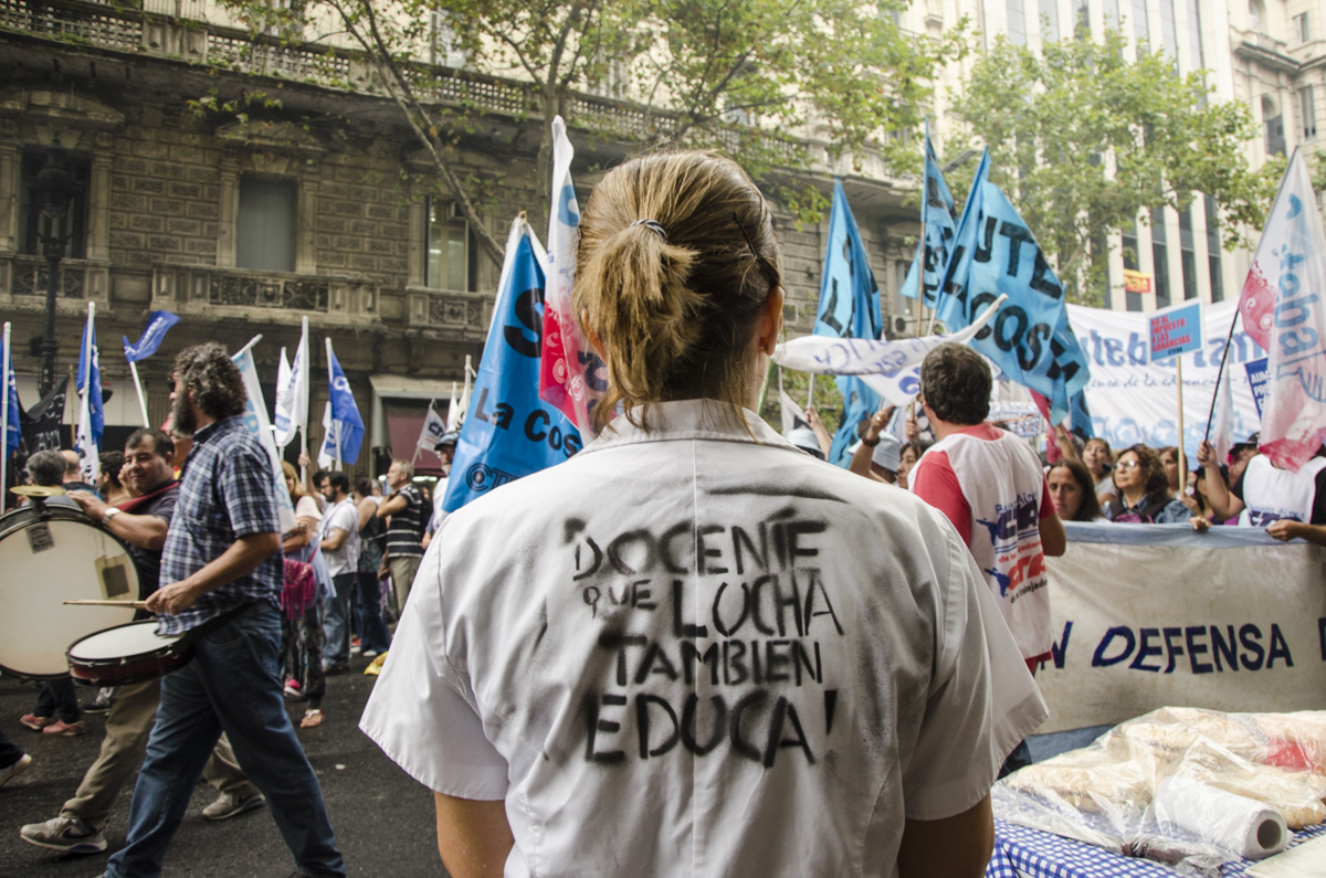 ¿Qué culpa tiene un docente si no puede dar clases porque hay un gobierno que le niega el salario digno que necesita para poder trabajar? El presidente dijo que quiere diálogo. Nosotros le contestamos que queremos discutir el financiamiento educativo, el cumplimiento de la ley, la paritaria libre, los planes de mejoras, más formación docente, más doble jornada y más educación".