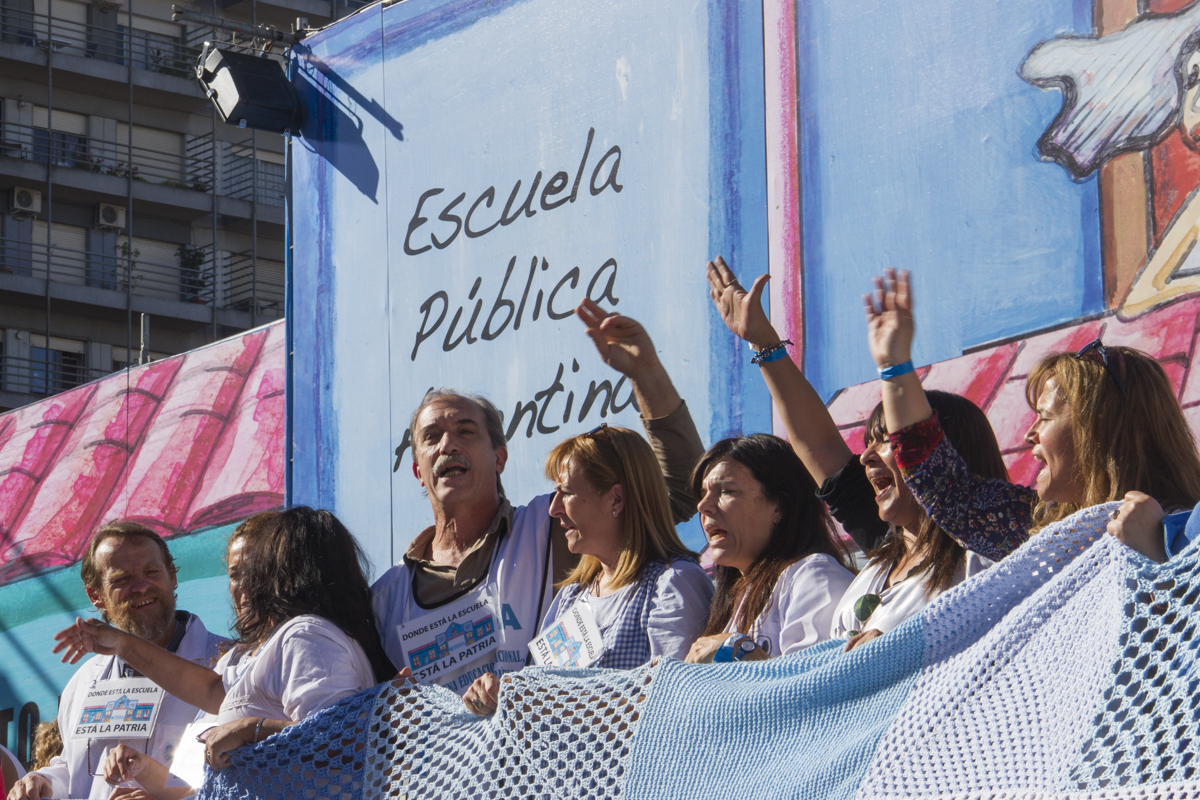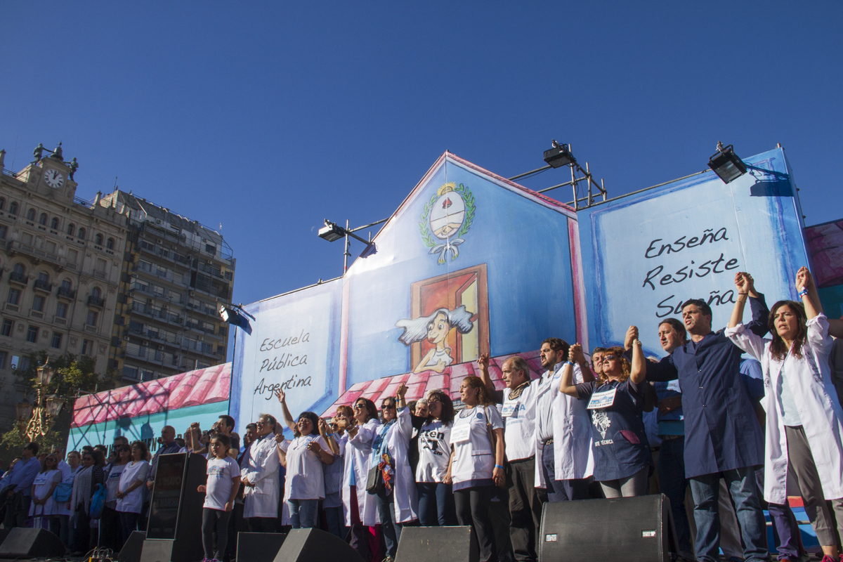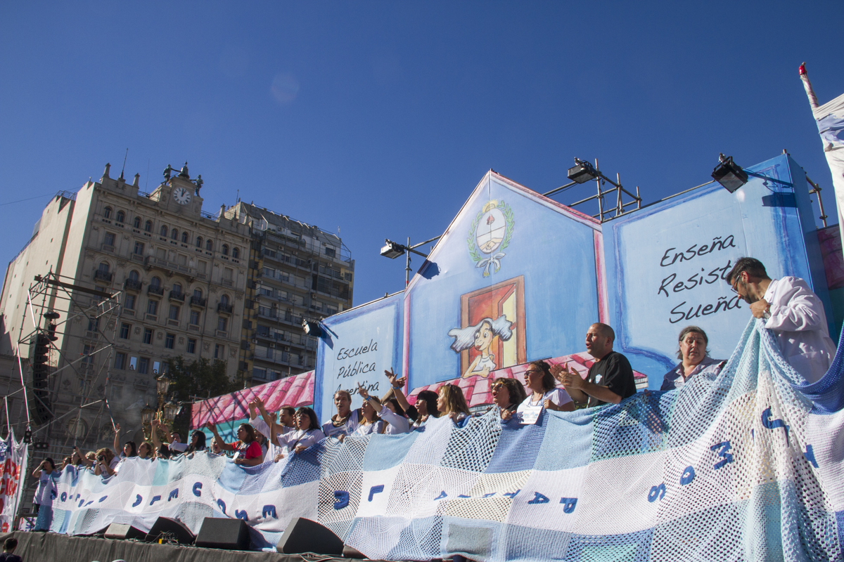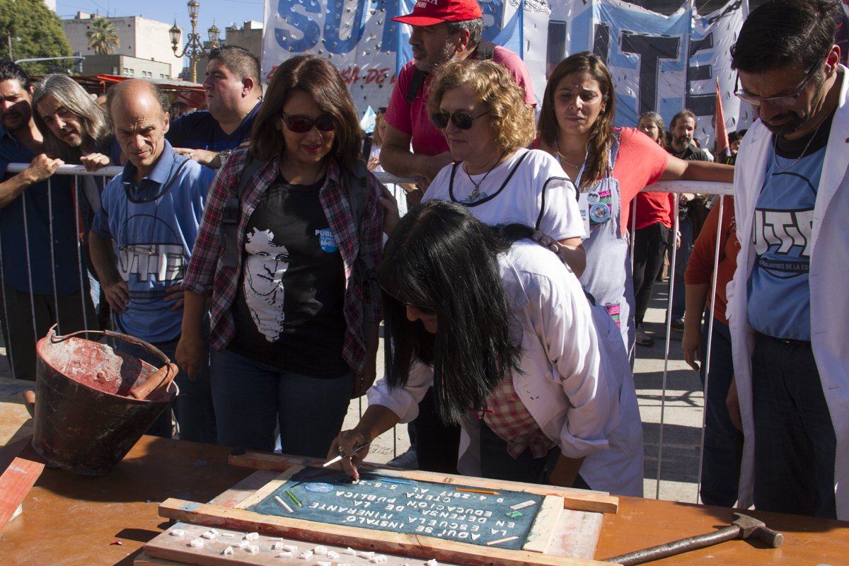 La Secretaria General de CTERA, Sonia Alesso, lo inició diciendo: "Estamos acá porque tenemos memoria, tenemos historia y honramos a nuestros mártires y a nuestros Trabajadores. Seguimos exigiendo Paritaria Nacional Docente y que el Gobierno Nacional se digne a escuchar los justos reclamos que hacemos los Maestros. La Escuela Pública no se rinde y va a seguir peleando, porque es ella quien cobija y protege a todos los pibes y pibas de nuestra Patria. ¡Ni un paso atrás y a seguir peleando!".