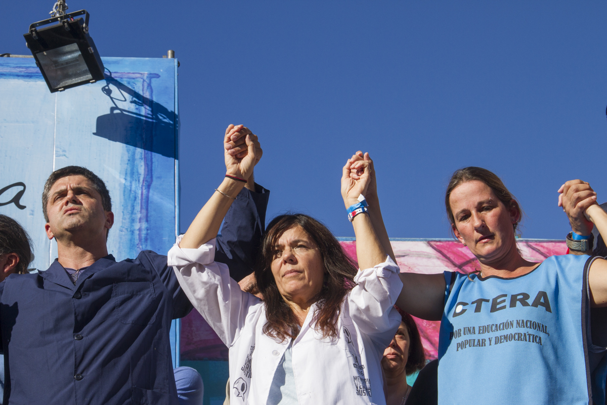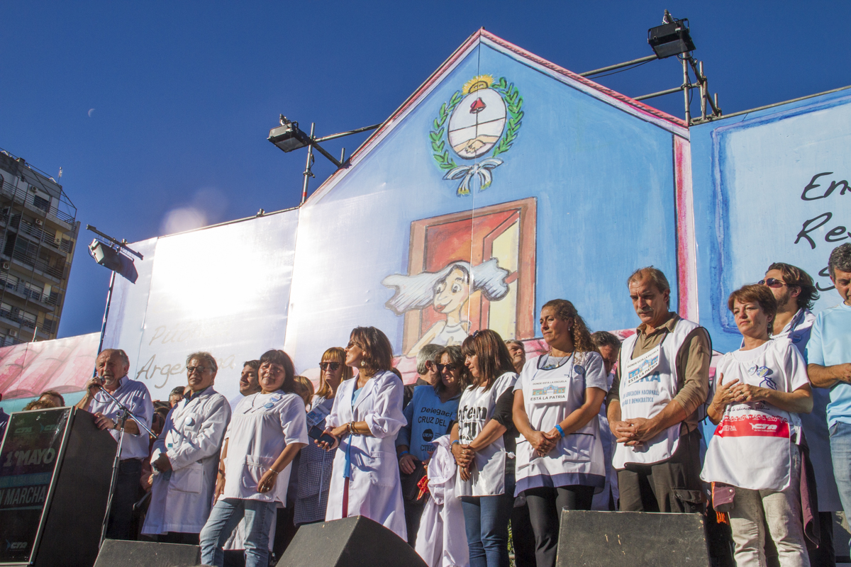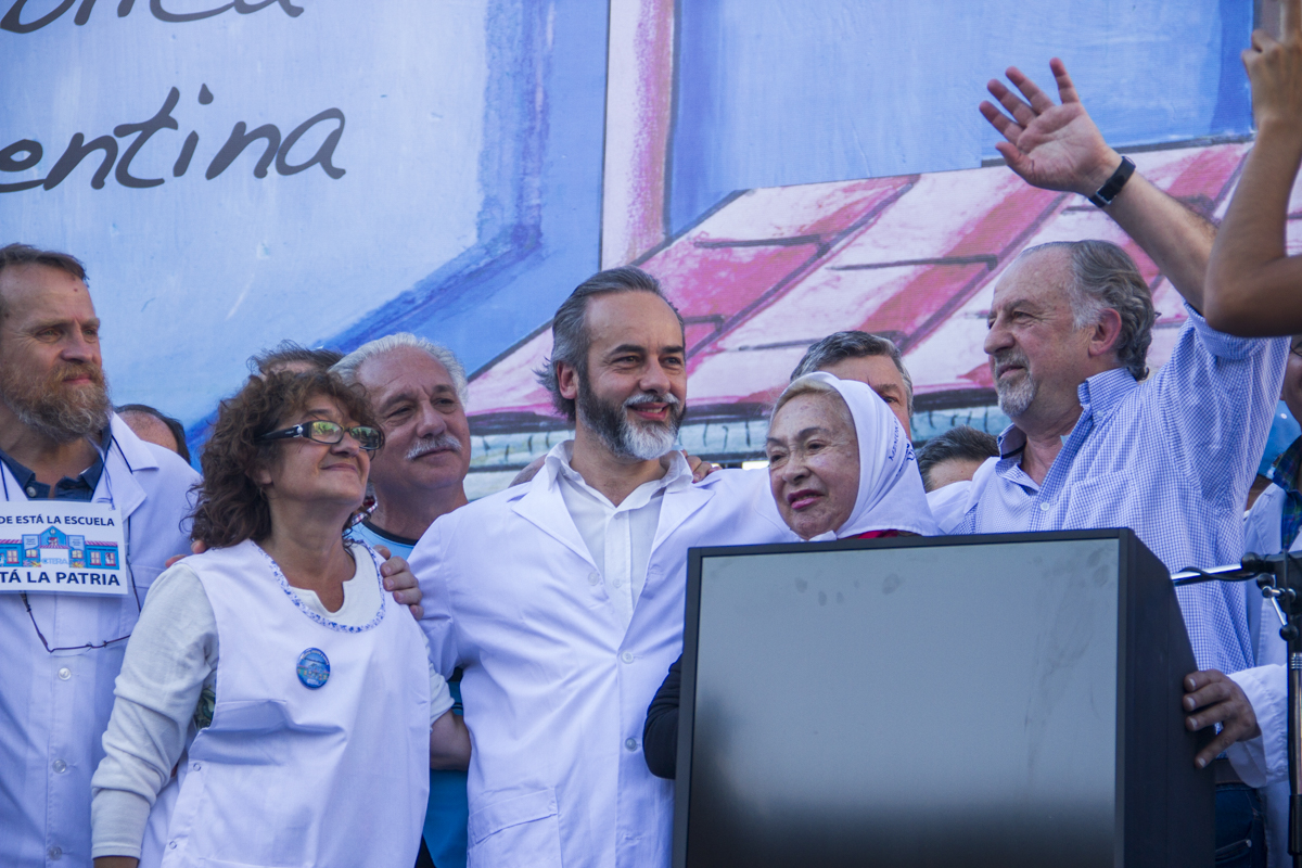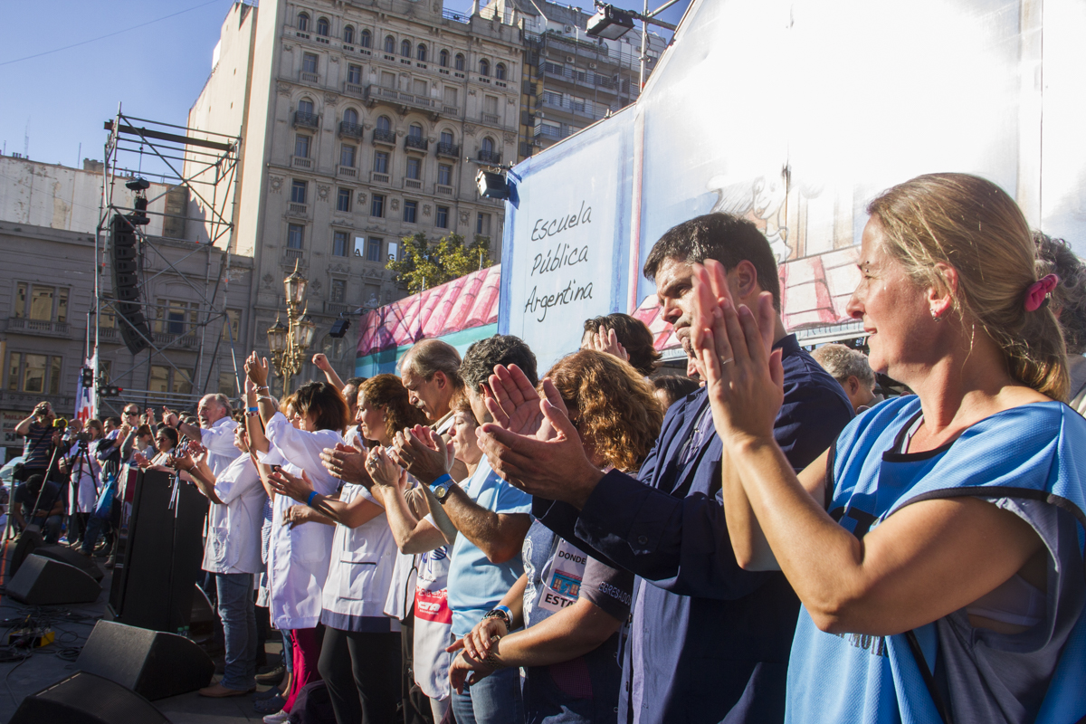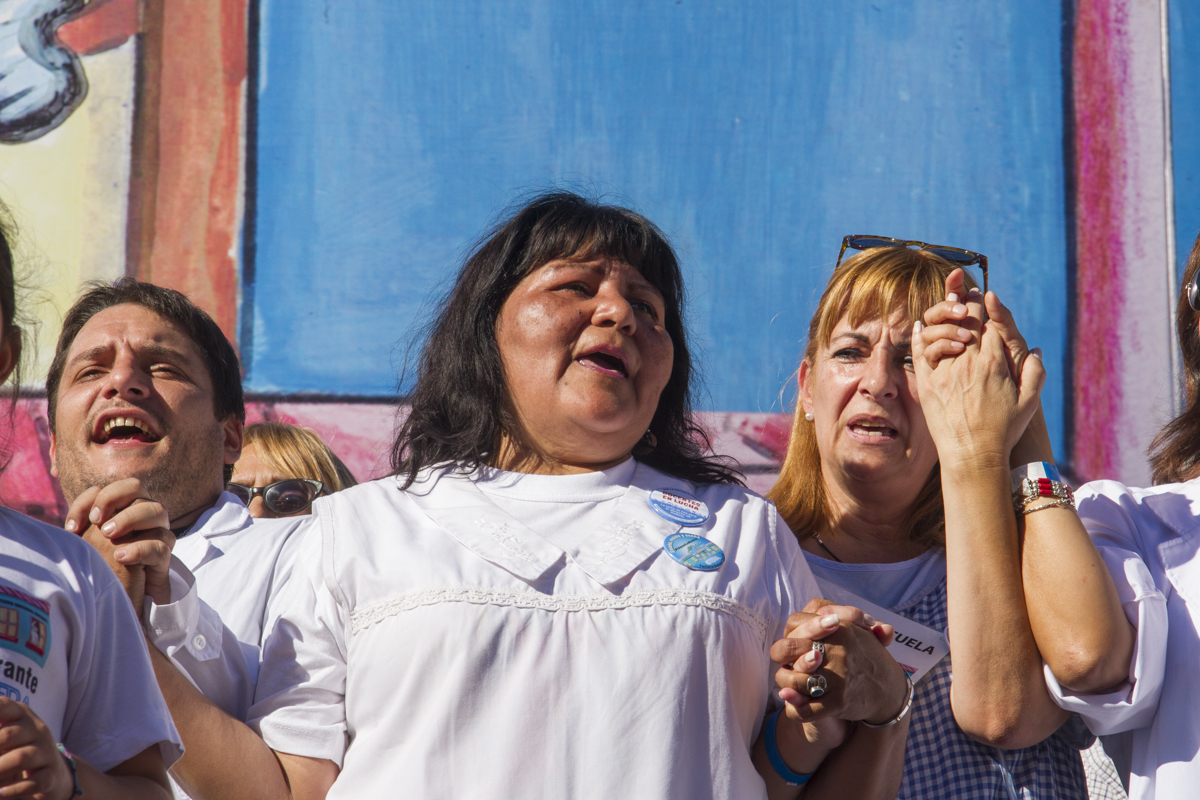 La Secretaria General de CTERA, Sonia Alesso, lo inició diciendo: "Estamos acá porque tenemos memoria, tenemos historia y honramos a nuestros mártires y a nuestros Trabajadores. Seguimos exigiendo Paritaria Nacional Docente y que el Gobierno Nacional se digne a escuchar los justos reclamos que hacemos los Maestros. La Escuela Pública no se rinde y va a seguir peleando, porque es ella quien cobija y protege a todos los pibes y pibas de nuestra Patria. ¡Ni un paso atrás y a seguir peleando!".