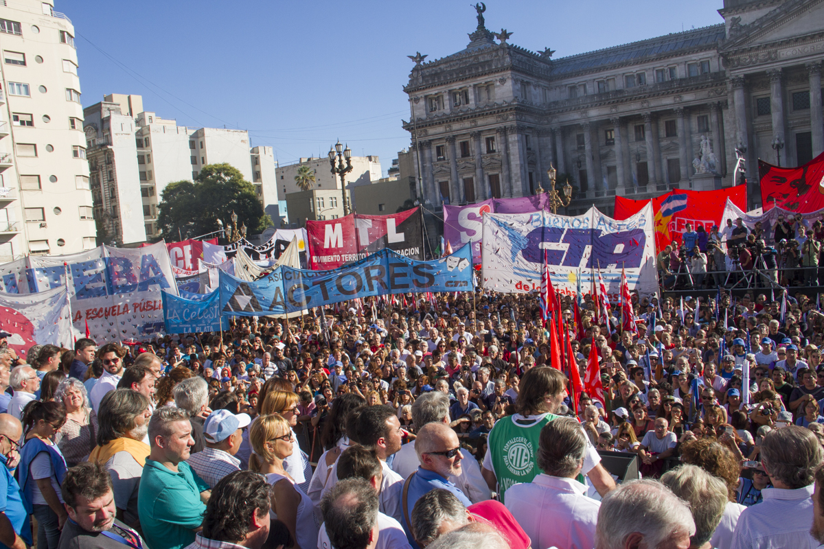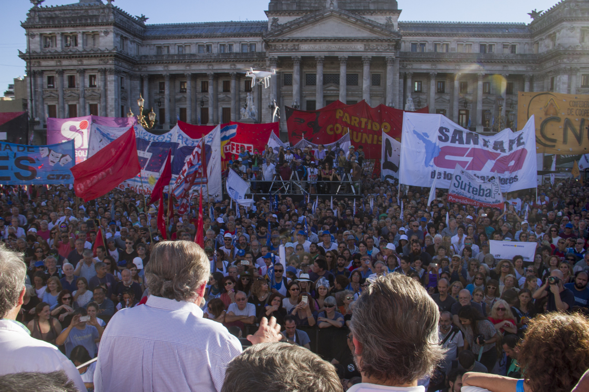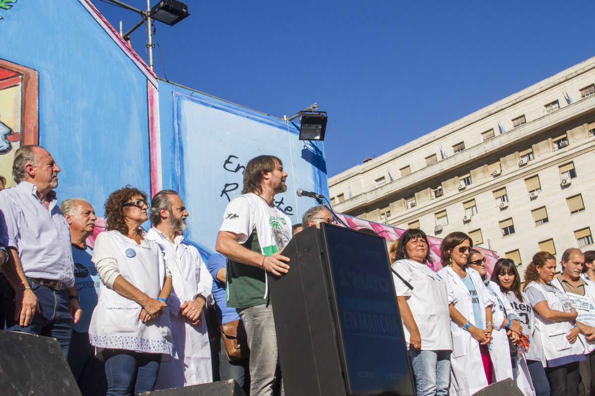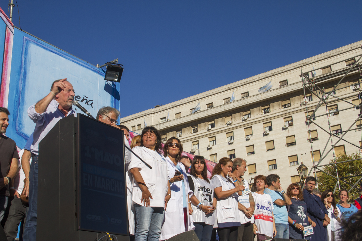 El Maestro Hugo Yasky de la CTA enfatizó: "Los Trabajadores vamos a seguir defendiendo los convenios colectivos, el salario digno y nuestros Derechos. Eso no se entrega: nadie está de rodillas, no hay bandera blanca. Esta lucha va a continuar hasta que hagamos respetar cada uno de nuestros Derechos. Por esto, es necesario que recuperemos la calle e impongamos las reglas de juego para que los más débiles seamos respetados".
