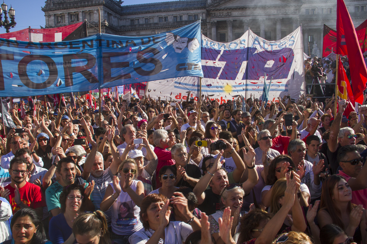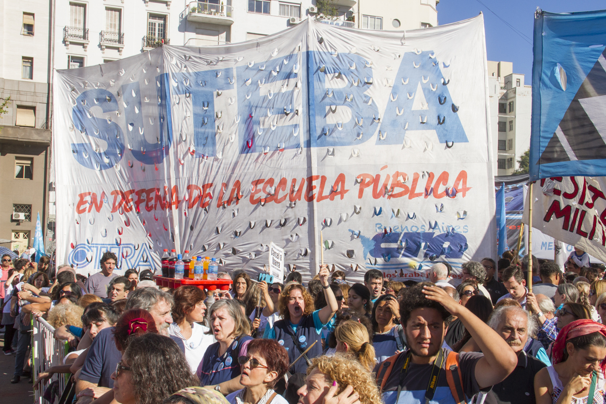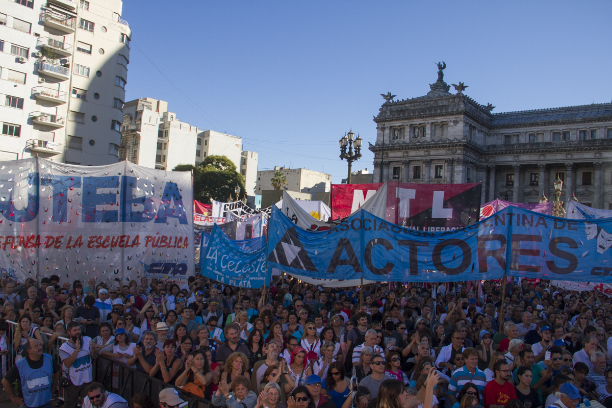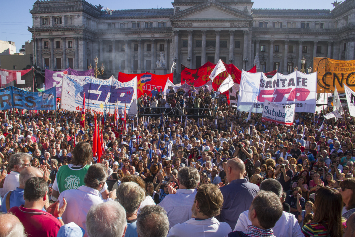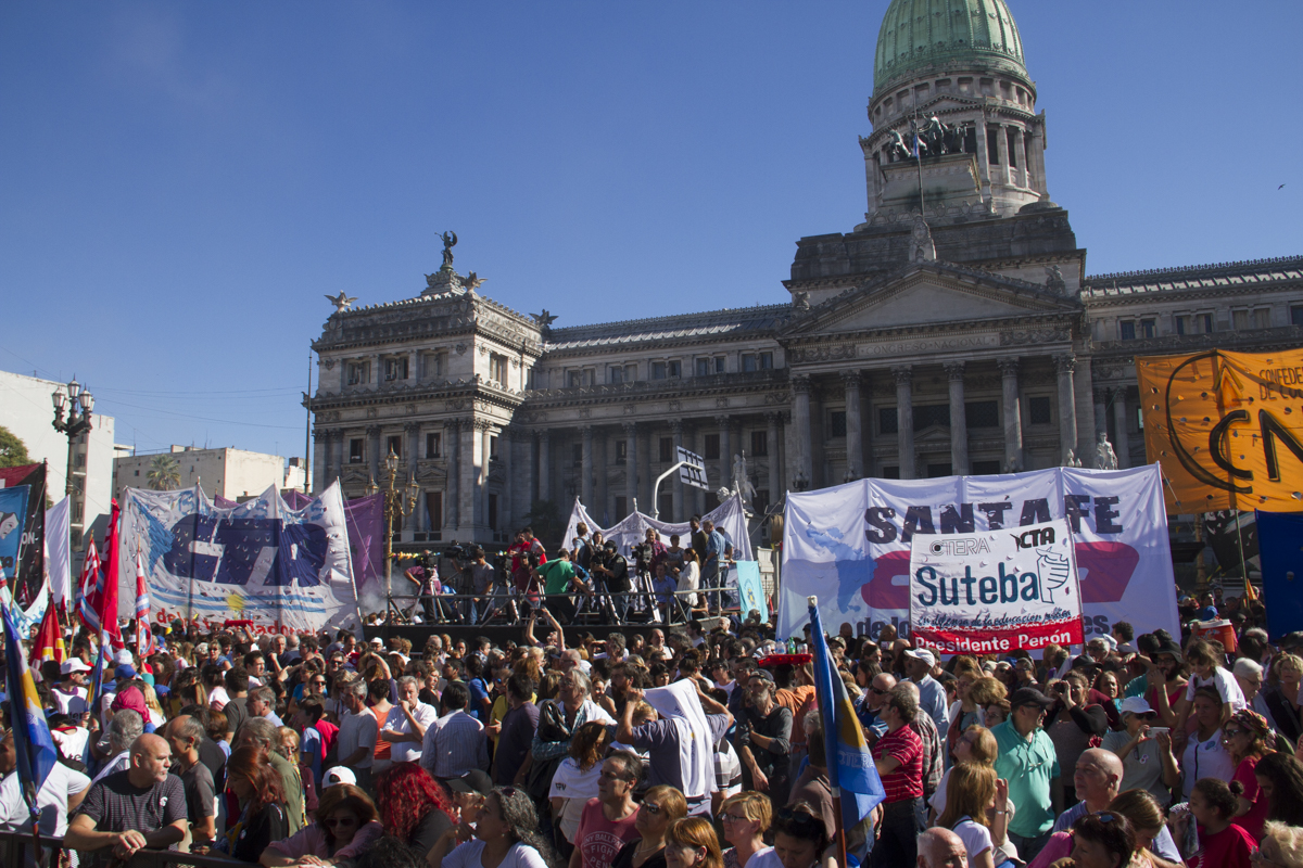 El Maestro Hugo Yasky de la CTA enfatizó: "Los Trabajadores vamos a seguir defendiendo los convenios colectivos, el salario digno y nuestros Derechos. Eso no se entrega: nadie está de rodillas, no hay bandera blanca. Esta lucha va a continuar hasta que hagamos respetar cada uno de nuestros Derechos. Por esto, es necesario que recuperemos la calle e impongamos las reglas de juego para que los más débiles seamos respetados".