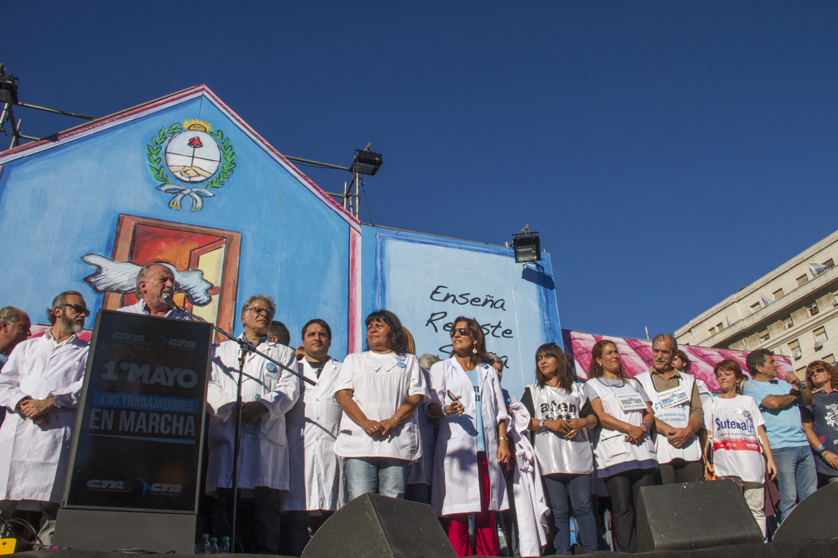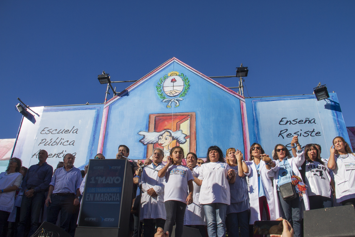 En el Día de los y las Trabajadoras, se realizó el acto central, frente a la Escuela Pública Itinerante, que contó con la participación de miles de Trabajadores y Trabajadoras.