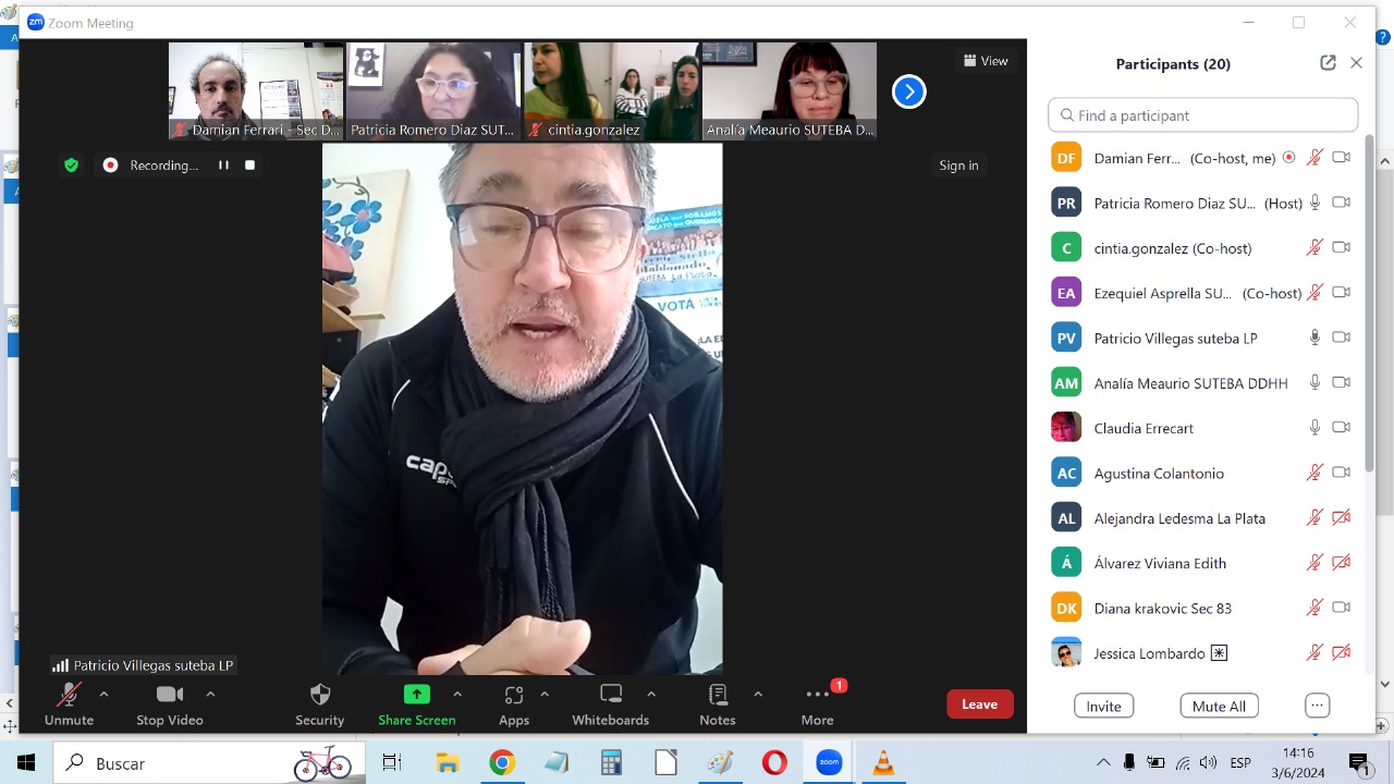 Por su parte, Patricio Villegas, Secretario General del SUTEBA La Plata, saludó y felicitó a lxs Profesorxs por el importante compromiso asumido, al sumarse y sumar a sus alumnxs a esta propuesta.
