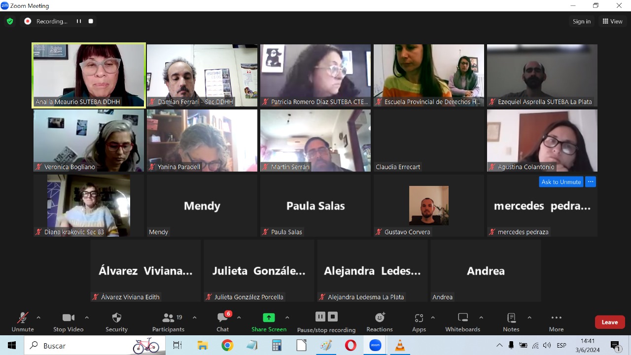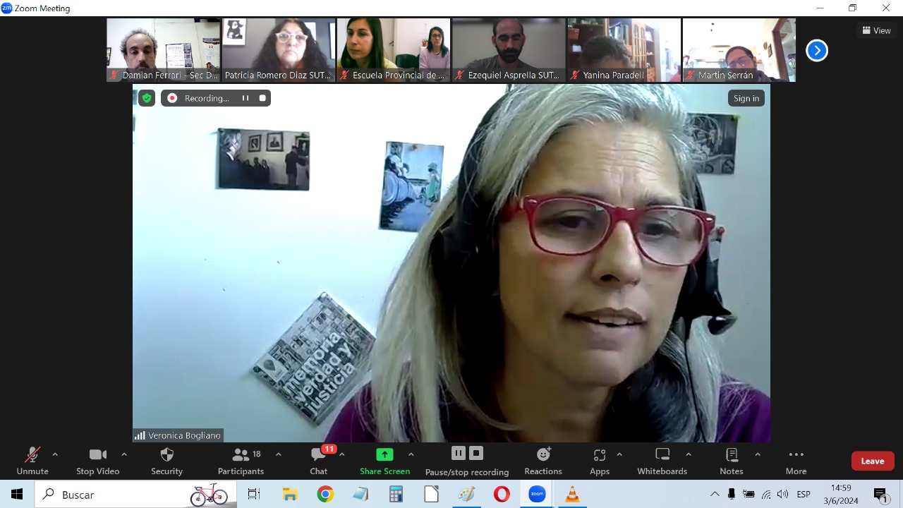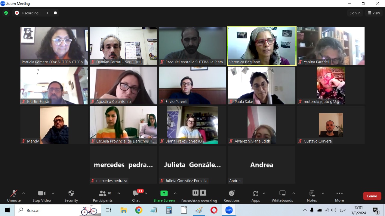 Este lunes 3 de junio comenzó la capacitación docente de la 4º edición del Programa "Yo fui a los Juicios con mi Profe" que lleva adelante la Secretaría de DDHH del SUTEBA Provincia, en articulación con la Subsecretaría de DDHH del Gobierno de la provincia de Buenos Aires, de la que participan Docentes de más de 18 Escuelas de La Plata e Institutos de Formación Docente.